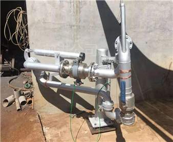 *典型的槽車底部裝卸鶴管,與槽車用快速接頭或者法蘭聯(lián)接,采用五個(gè)旋轉(zhuǎn)接頭。介質(zhì)由槽車卸油口經(jīng)鶴管自上而下流入管線內(nèi),采用重力作用下的自流方式就可卸車,接口高度較高時(shí)